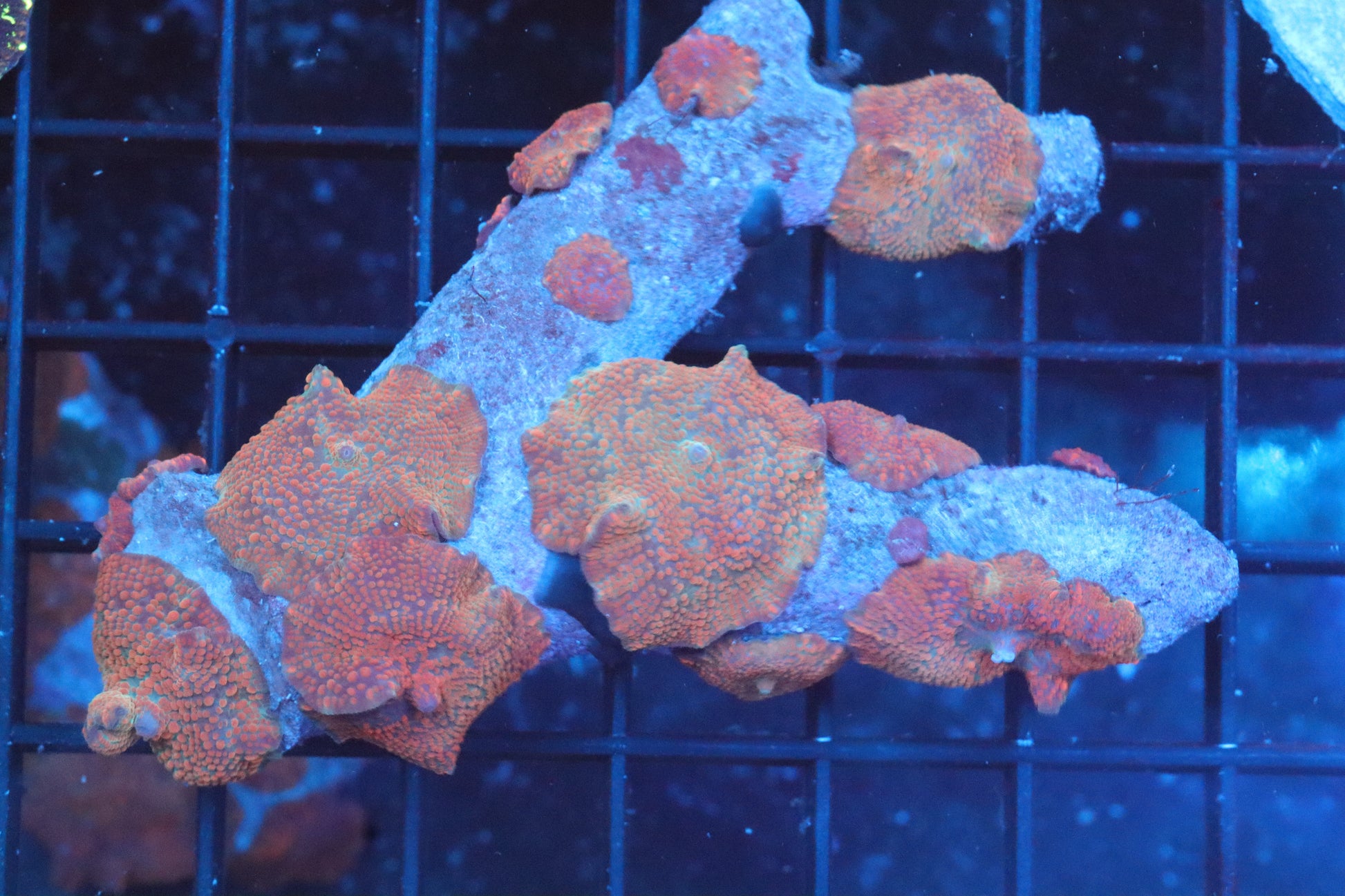 Sunrise Discosoma Mushroom Colony on a ~3 1/2" branching live rock 8+ mushrooms