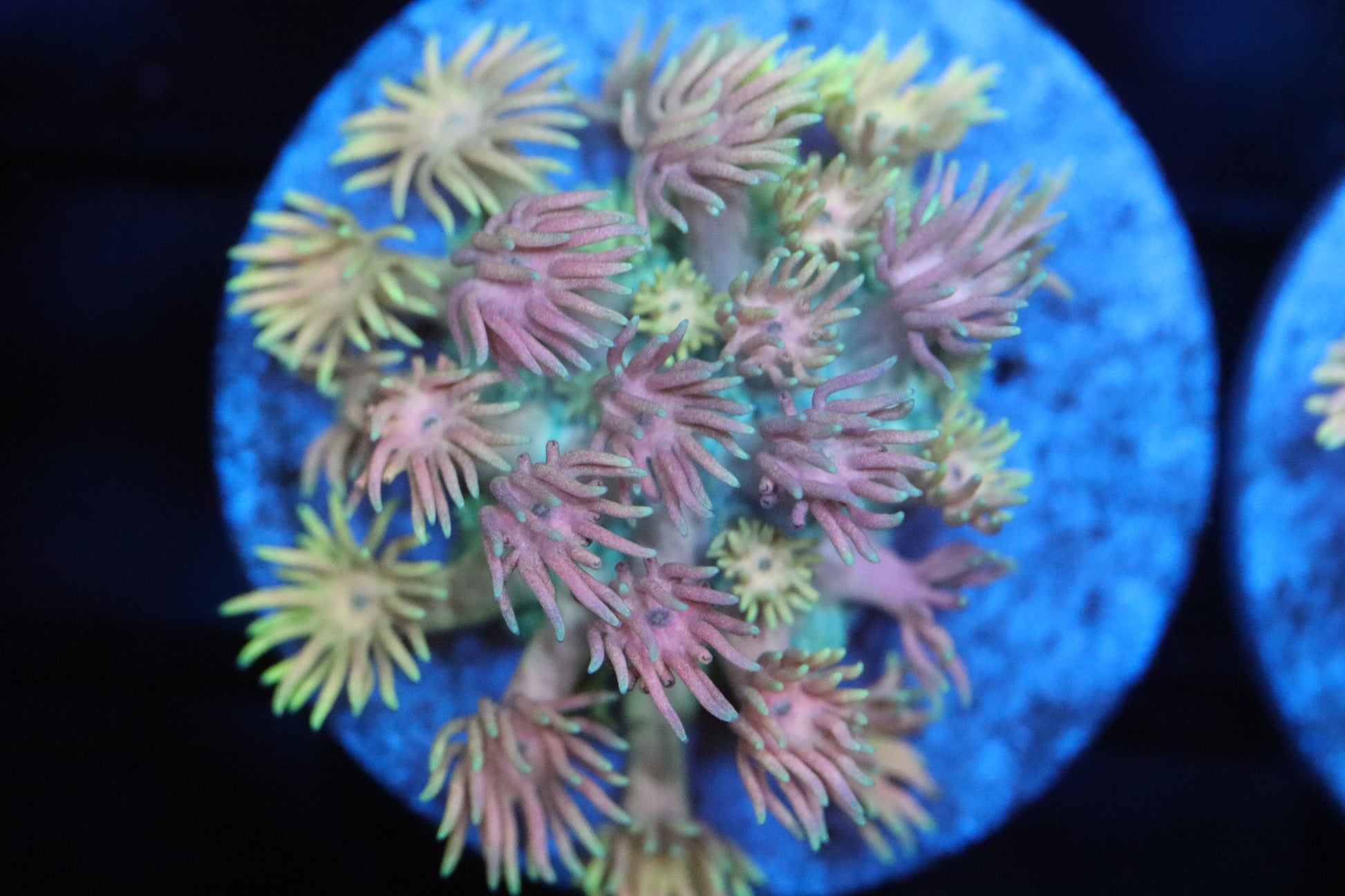 Yellow and Pink Goni, fully conditioned. You will receive a coral similar in shape, size and color.