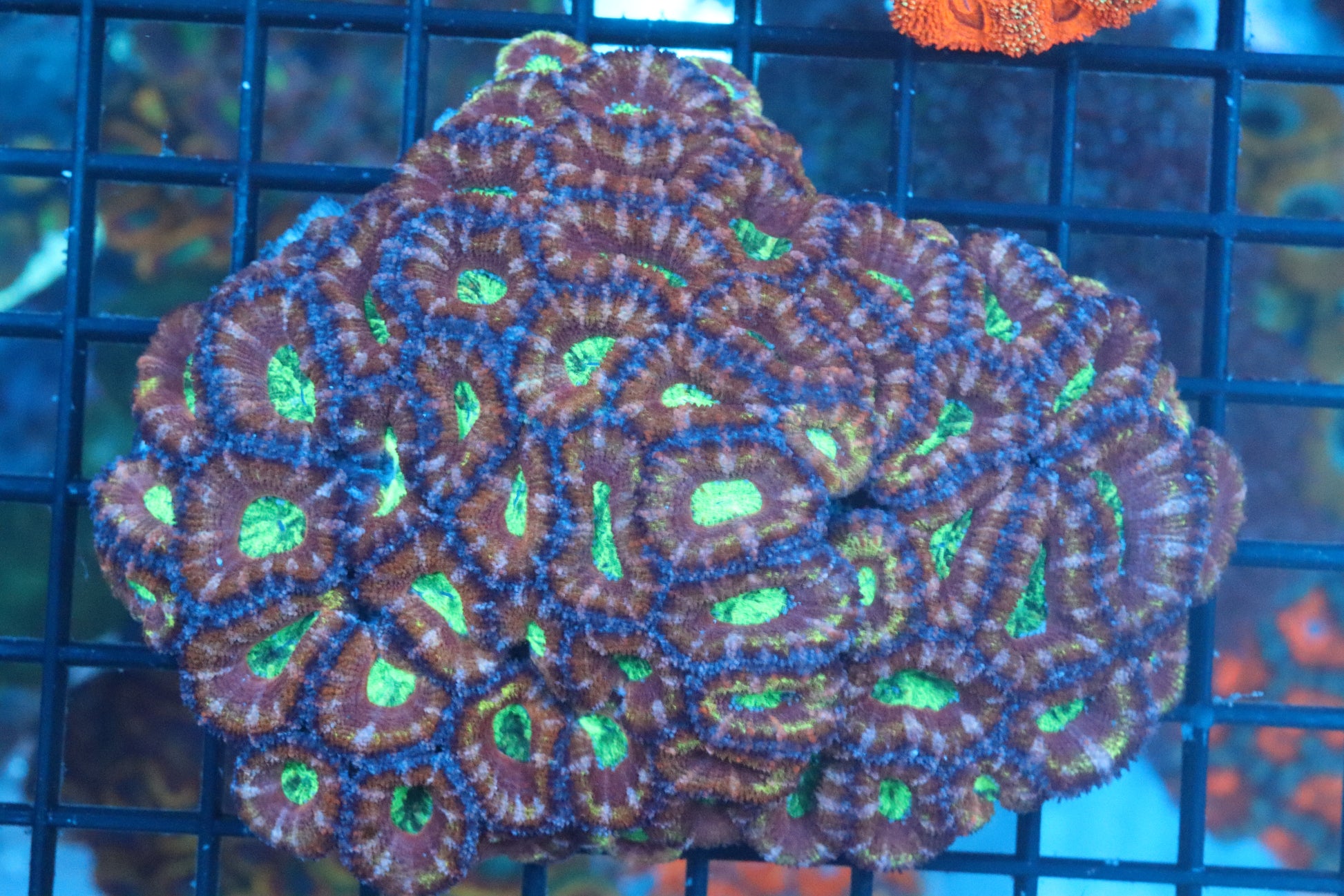Micromussa Lord Coral, fully conditioned. Coral is ~3 1/2" in diameter. Each Egg Crate Square behind it is approximately .5x.5″.