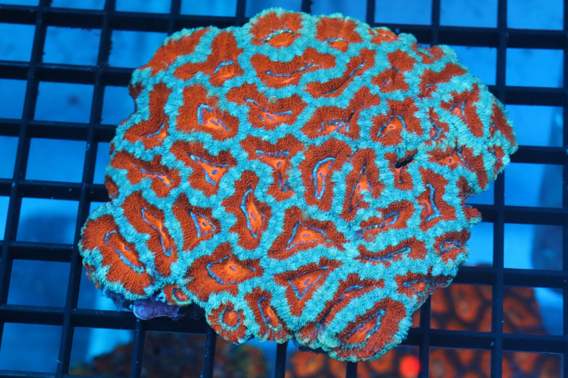 Micromussa Lord Coral, fully conditioned. Coral is ~2 1/2" in diameter. Each Egg Crate Square behind it is approximately .5x.5″.