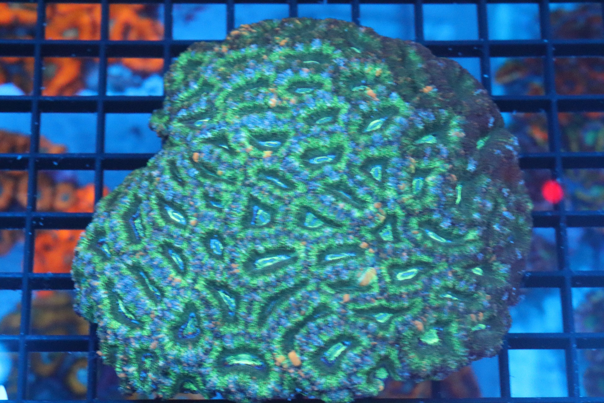 Micromussa Lord Coral, fully conditioned. Coral is ~3" in diameter. Each Egg Crate Square behind it is approximately .5x.5″.