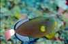 Better behaved than the Niger Triggerfish, the Melichthys vidua or Pinktail Triggerfish is one of the most desireable for the reef aquarium. It can be shy at first but will become friendlier than many of the other triggers and not become aggressive with age but more tame. It is very hardy and can be kept with peaceful fishes of equal size or larger. It is not as likely to re-aquascape your tank as the other triggerfish species often will. Will eat some shrimp and other crusteaceans.
