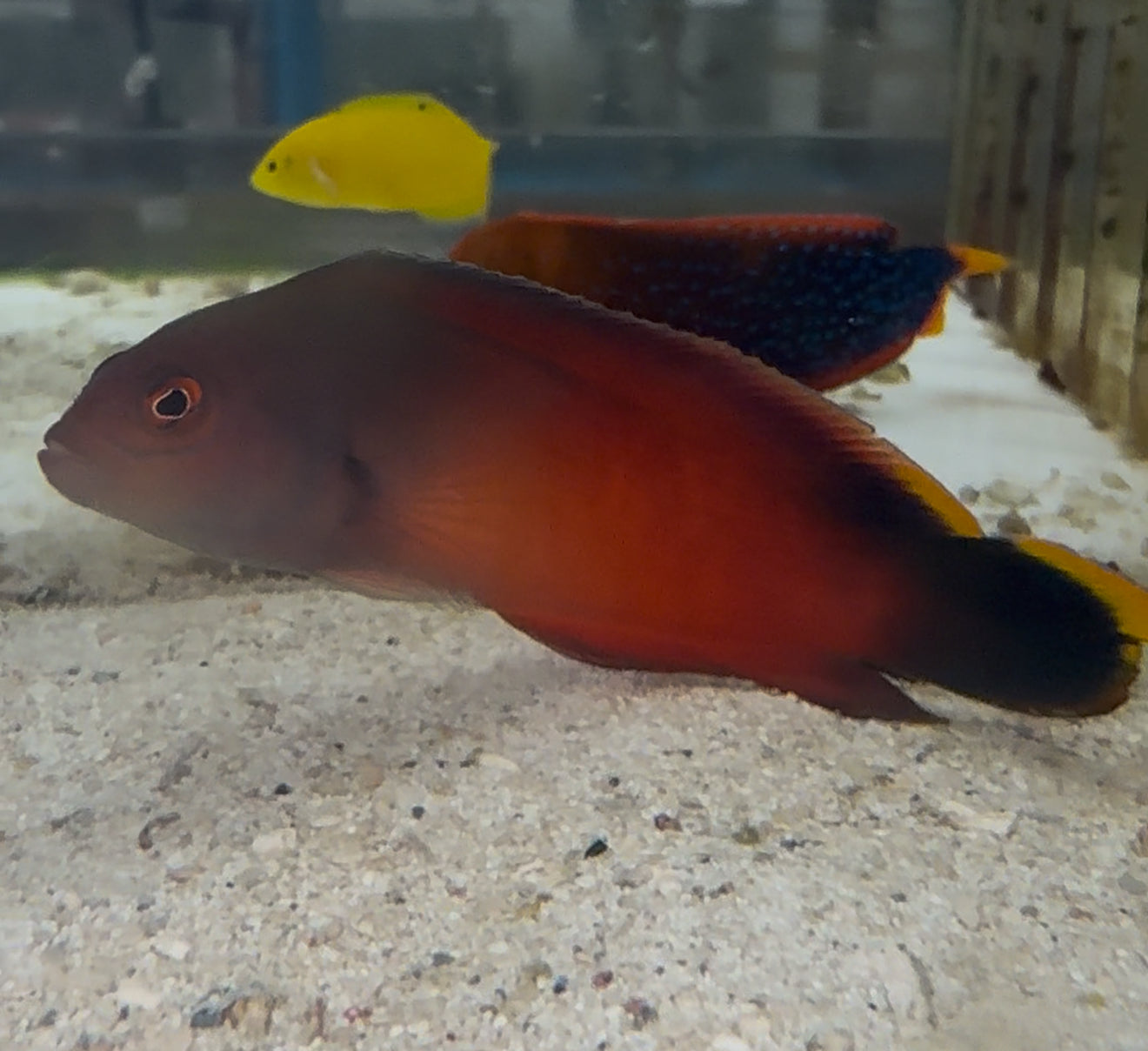 Natural History: The Queensland dottyback is found in recesses and crevices of tidepools and lagoons. It is most often observed singly. Females have a grayish head whereas males have a reddish head.