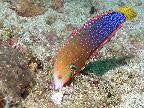 The Adult Red Coris Wrasse varies greatly in coloration from the Juvenile Red Coris Wrasse, which is red with white saddles. This fish requires a sand bed of 3 to 4 inches for it to bury in. A word of caution: they are delicate shippers, best kept by experienced hobbyists.